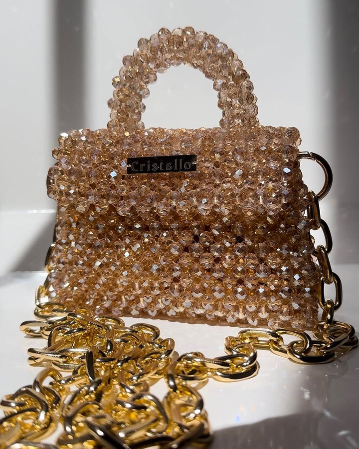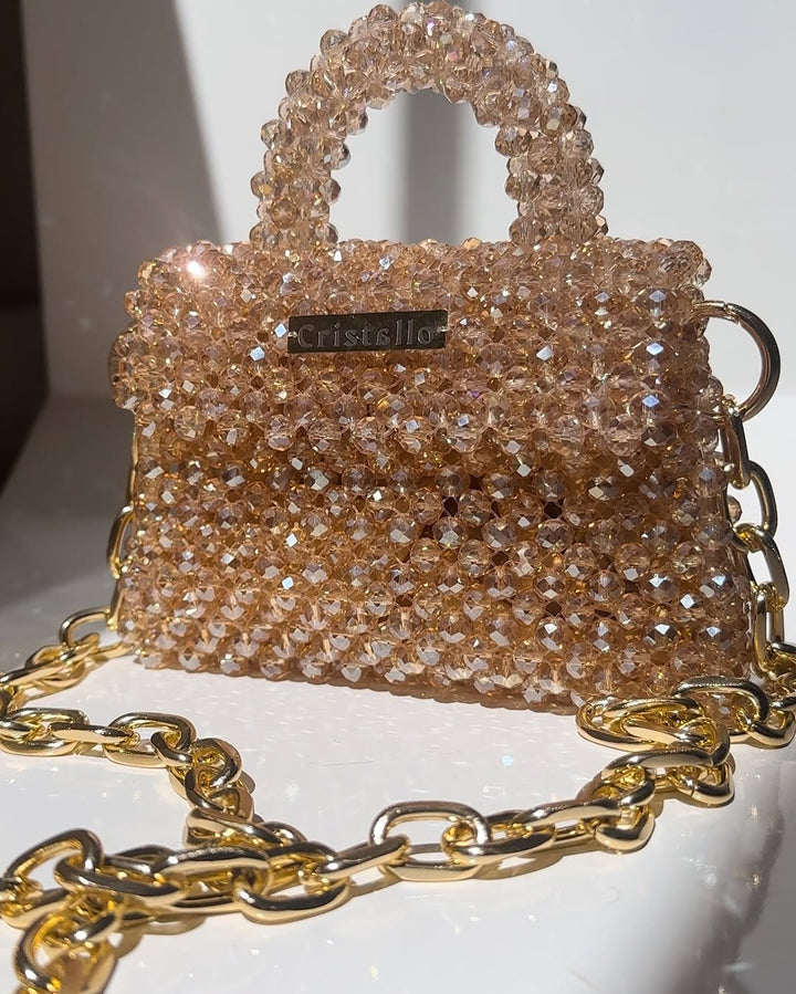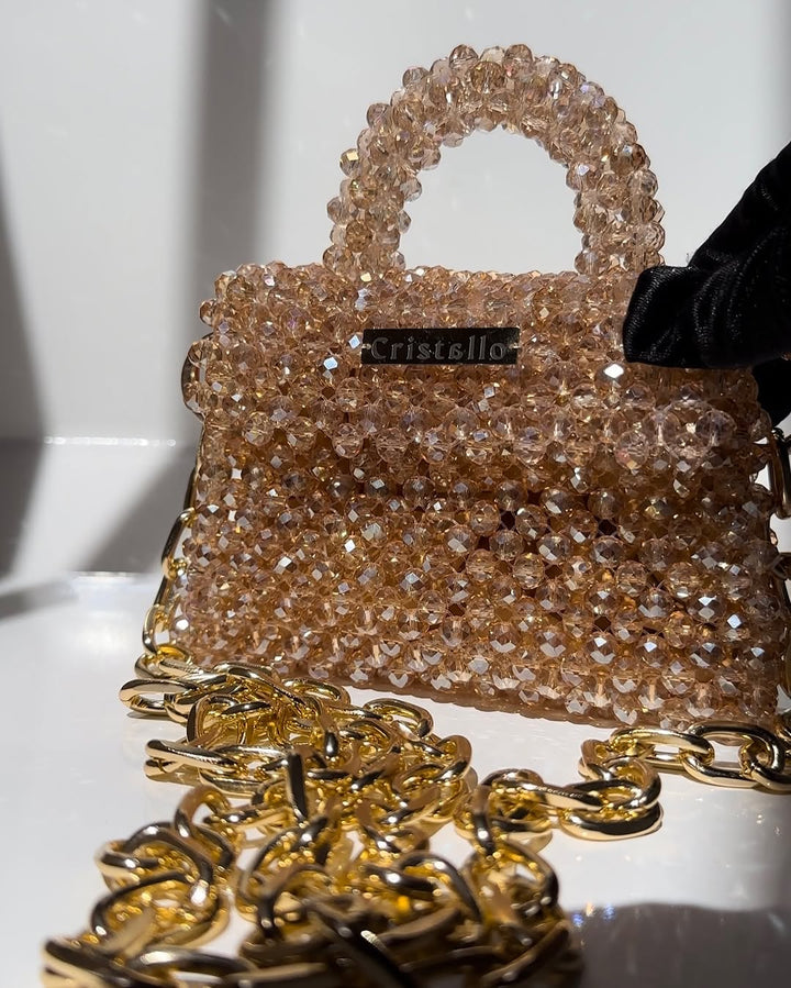 Cristello Aurora Beaded Mini Bag – Golden Peach Crystal