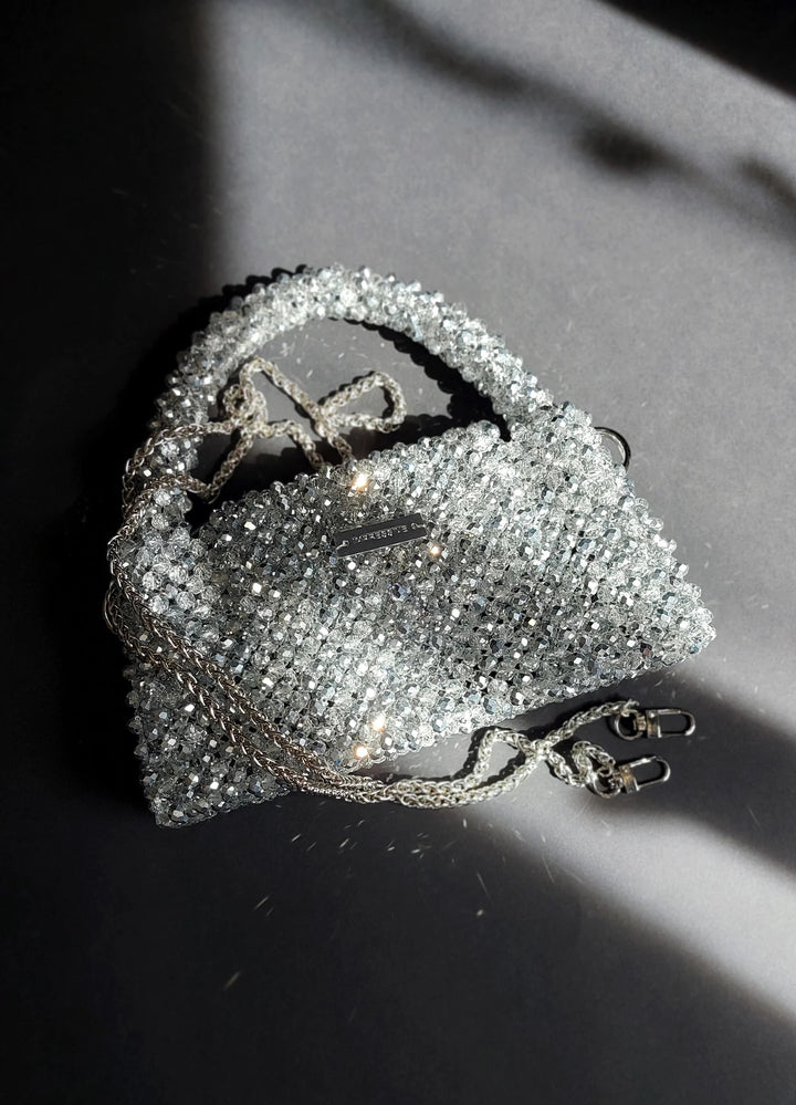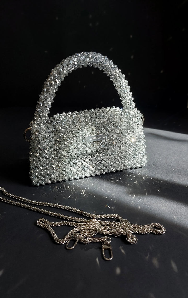 Crystal Beaded Evening Clutch Bag with Chain Strap