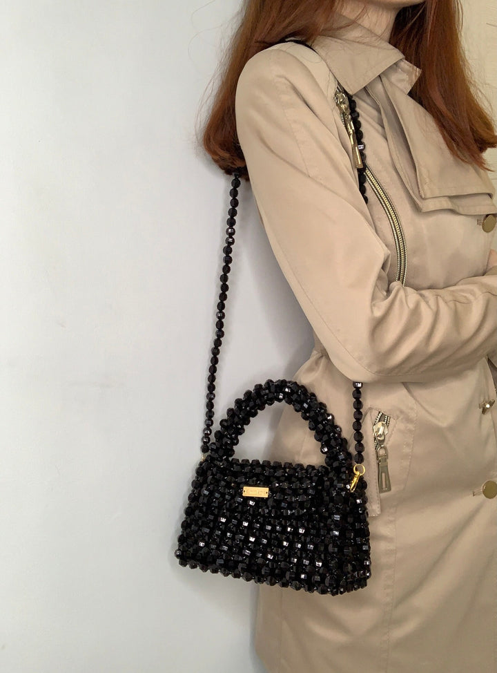 Elegant Black Crystal Beaded Handbag