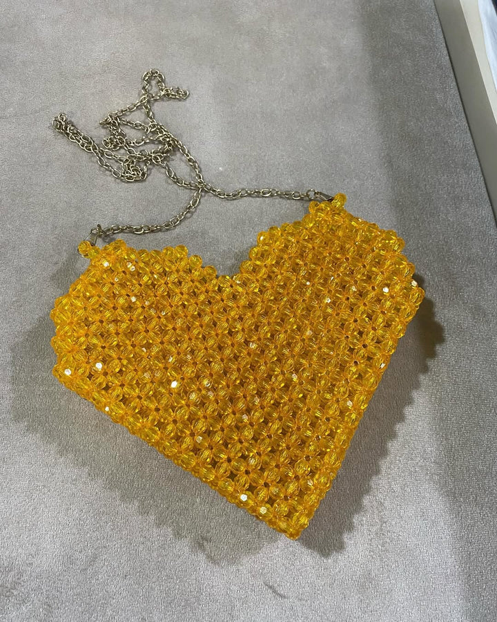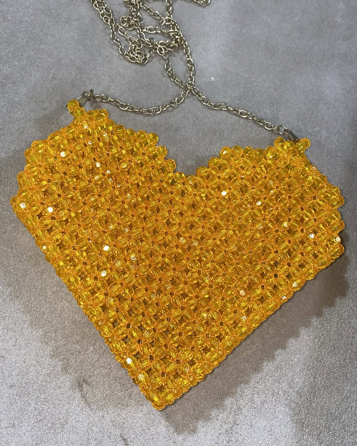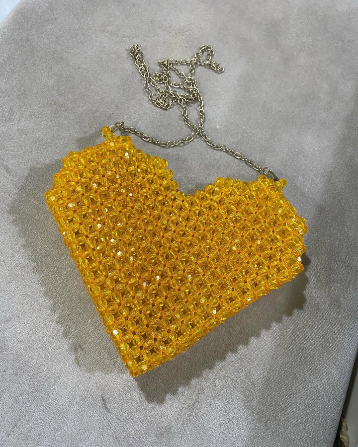 Vibrant Yellow Beaded Mini Shoulder Bag with Chain Strap